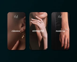 Este projeto de rebranding teve como objetivo alinhar a identidade visual da Mafí aos valores que suas joias transmitem, profissionalizando a marca e traduzindo, em cada elemento, sua essência única.